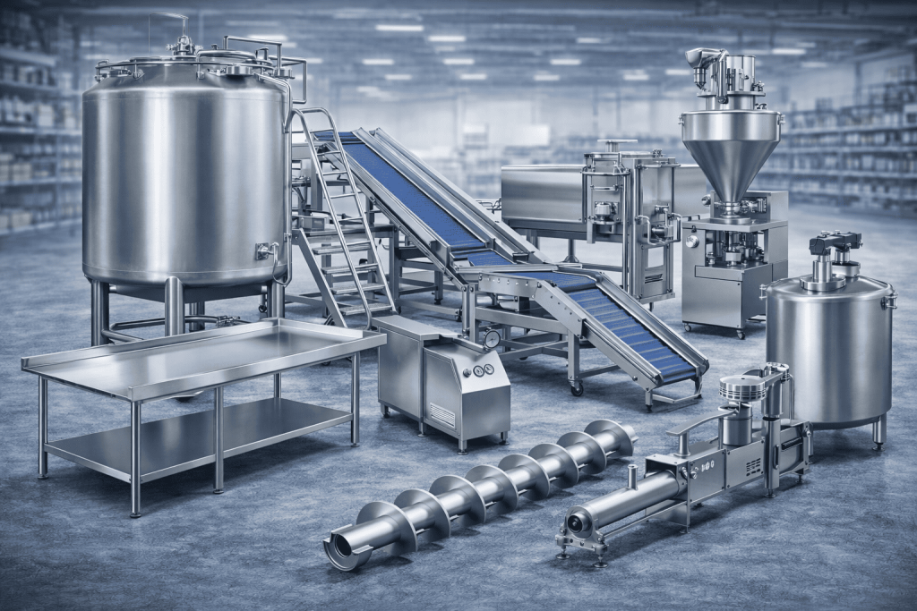 Diseñamos y comercializamos equipos y componentes en acero inoxidable de alto estándar sanitario: mesones, estanques, máquinas de proceso, tornillos sinfín y cintas transportadoras. Nuestros productos garantizan higiene, durabilidad y eficiencia operativa, cumpliendo con normativas alimentarias y adaptándose a cada línea de producción para maximizar productividad y continuidad operacional.