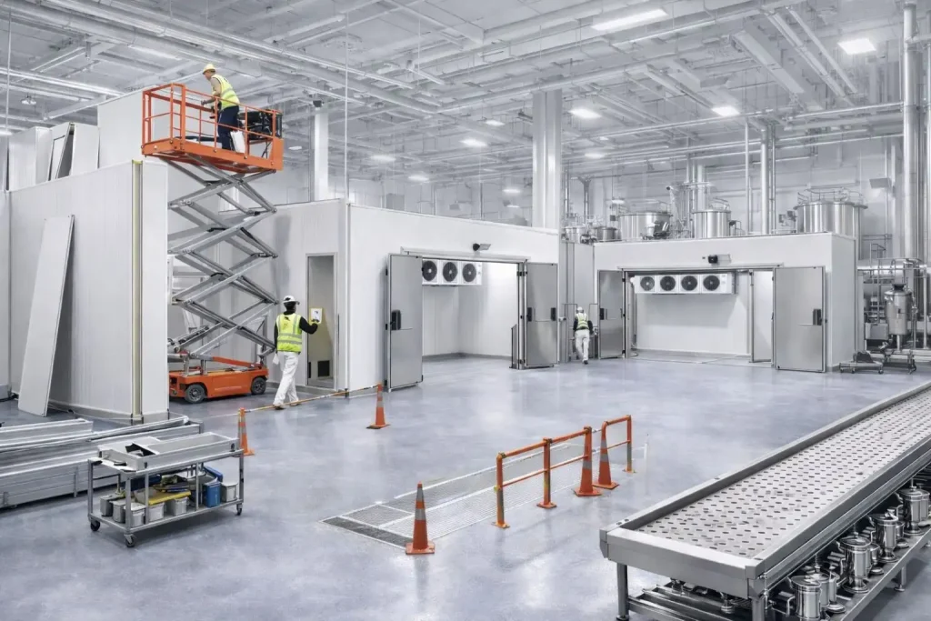 Desarrollamos soluciones integrales para la industria: construcción de cámaras frigoríficas, salas de proceso y pisos sanitarios bajo altos estándares normativos. Integramos sistemas de aire comprimido, trituradores, sopladores y equipos auxiliares, asegurando eficiencia operativa, continuidad productiva y adaptación a cada proceso. Ingeniería aplicada, ejecución confiable y foco en resultados para industrias exigentes.